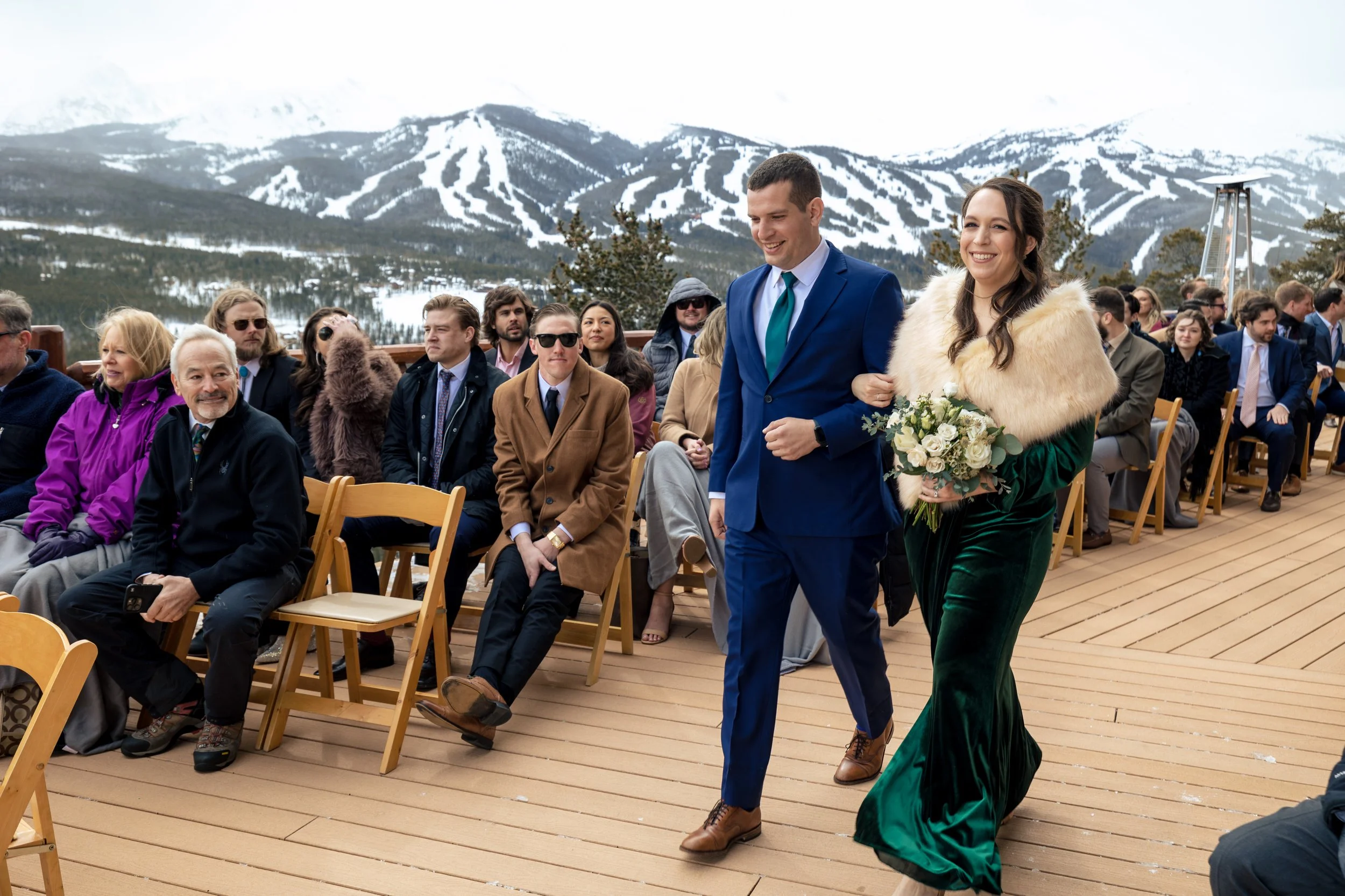 Given Clare and Colin’s love for skiing, Breckenridge was the ideal location for their wedding. The ceremony took place against the stunning backdrop of Breckenridge Ski Mountain. Despite the cold March day, the setting was breathtaking and provided a picturesque scene for their vows.