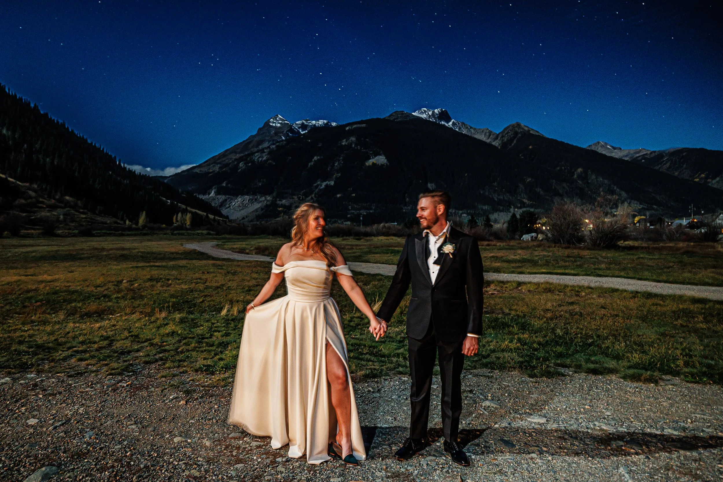 To cap off this incredible evening, we ventured out into the stunning Colorado night for a special astrophotography session. With the San Juan Mountains towering above and a clear sky filled with stars, it was a photographer’s dream. Caroline and Nick were enveloped in the serene beauty of the mountains, creating a perfect scene that I was thrilled to capture. The results were breathtaking, and the images will forever remind them of their love story against a starry backdrop.