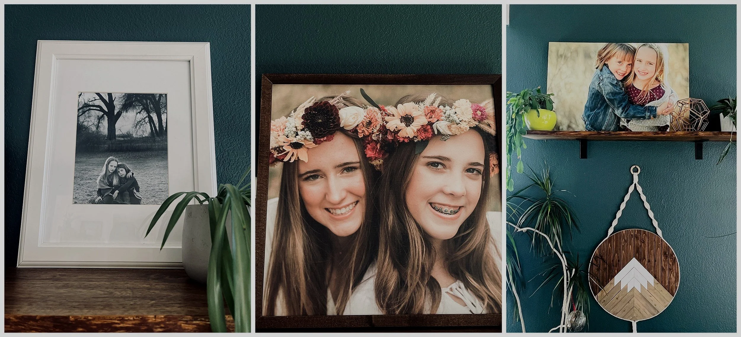 LEFT – a more tradition white matted frame. I love this option because you can switch out the photo if you want. (reach out for pricing on framed canvas)